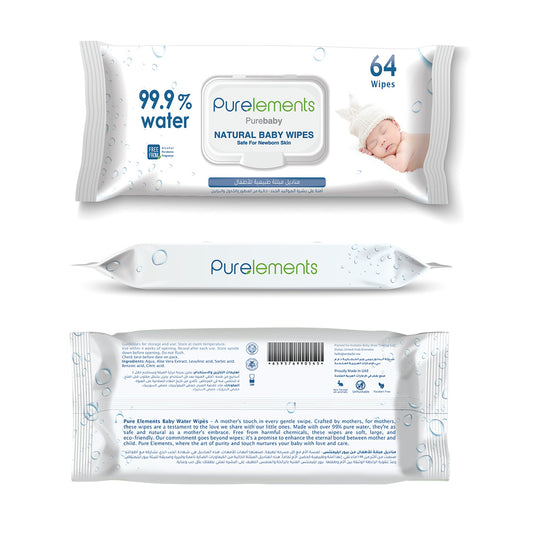 Purelements Aloe Baby Water Wipes - 99.9% Pure, 64pcs